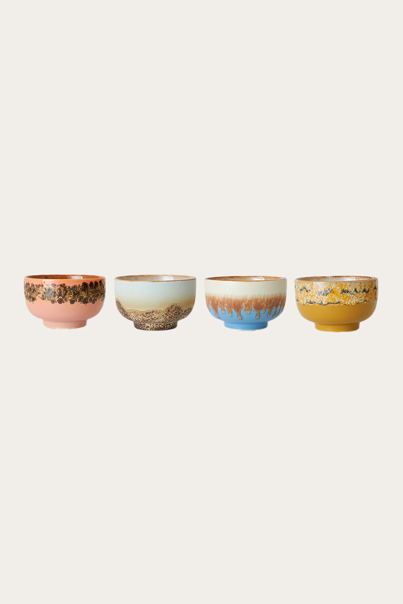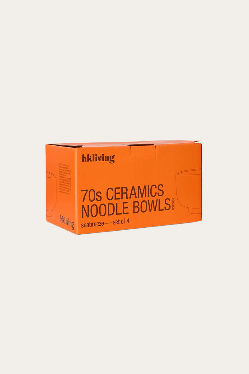 70s ceramics noodle bowl seabreeze er et stilrent sett med fire skåler inspirert av rå kystlinjer og naturlige overflater. De unike fargespillene og den håndlagde følelsen gir et avslappet og moderne uttrykk til borddekkingen, perfekt til både hverdags og servering av nudler eller småretter.