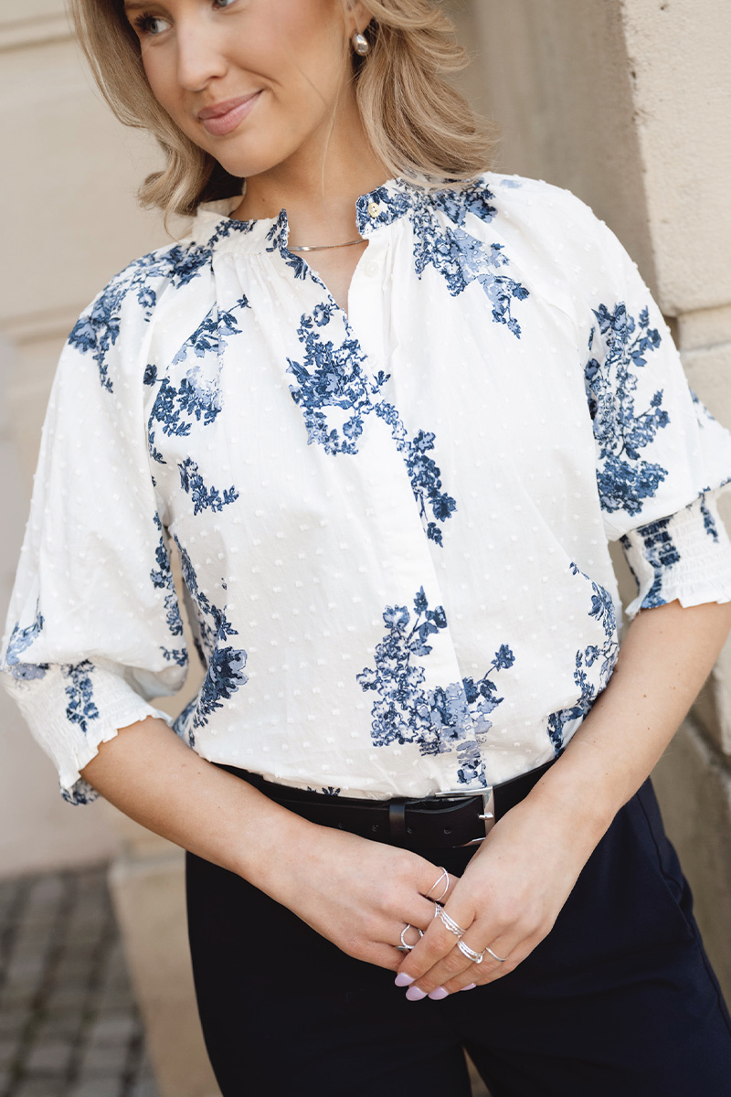 • Feminint blomsterprint i blåtoner