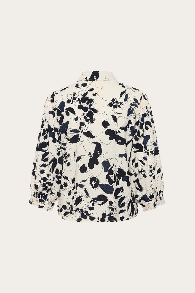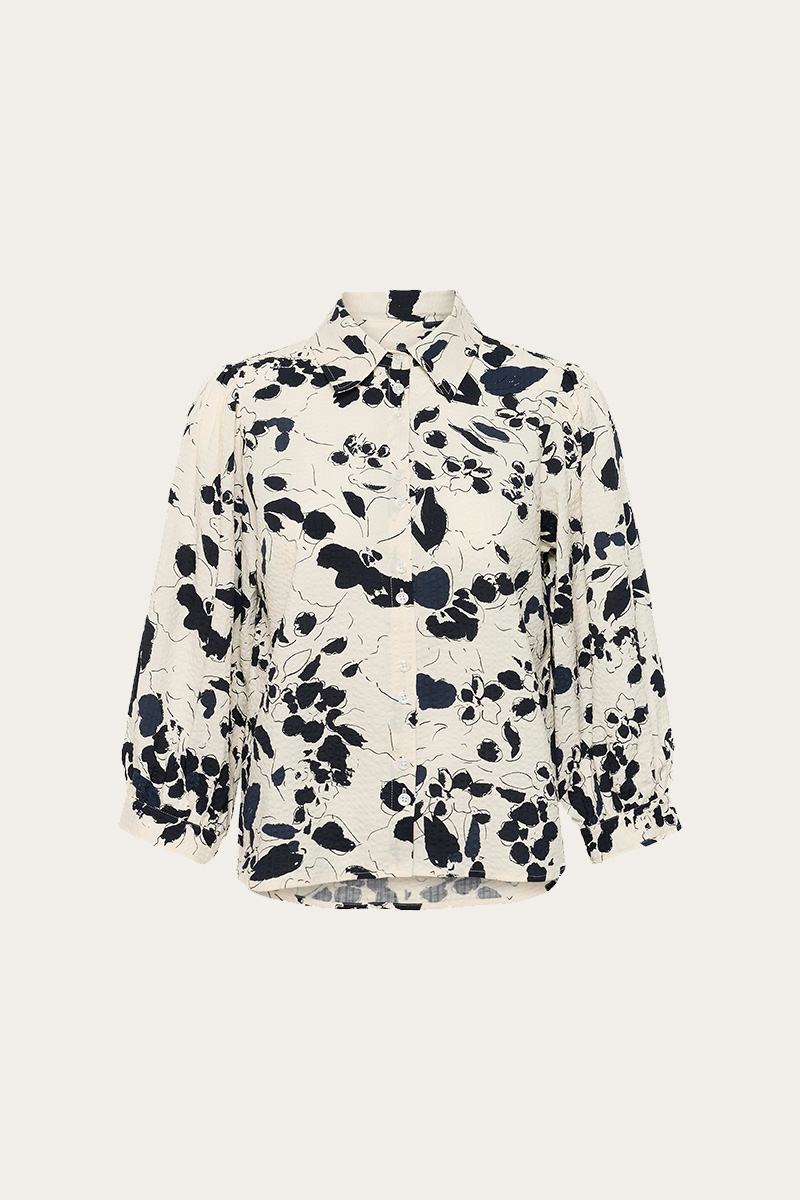 Anais shirt er en stilren og feminin skjorte med et kunstnerisk blomsterprint i dype blåtoner. Den lette kvaliteten og den flatterende passformen gjør den perfekt til både hverdags og mer pyntede anledninger.