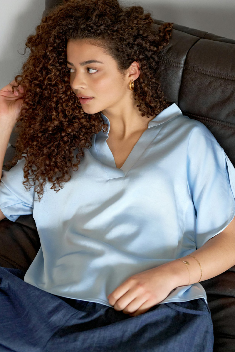 Anelle Heavy Sateen Blouse Light Blue