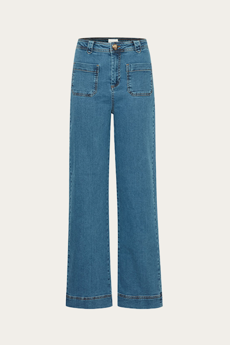 Lekre jeans fra Atelier Reve i herlig blå vask. Ir Eloi kommer i et stilfult design med høyt liv, rette bein og ekstra lommer i front som gir et tøffere uttrykk. Jeansen har også baklommer. Denne blir en favoritt til hverdag, men kan også enkelt styles til penere anledninger.