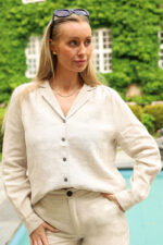Solina shirt fra Inwear! skjorten er laget i et mykt og lett lin som føles behagelig mot huden, og har en avslappet passform som passer til både hverdagsbruk og mer formelle anledninger. Skjorten har en vakker grønnfarge som gir en sofistikert og naturlig look, med klassiske detaljer som knapper i front og en diskré krage for et tidløst design. Style den med matchende bukser for et helhetlig uttrykk, eller kombiner den med jeans for en mer avslappet stil.