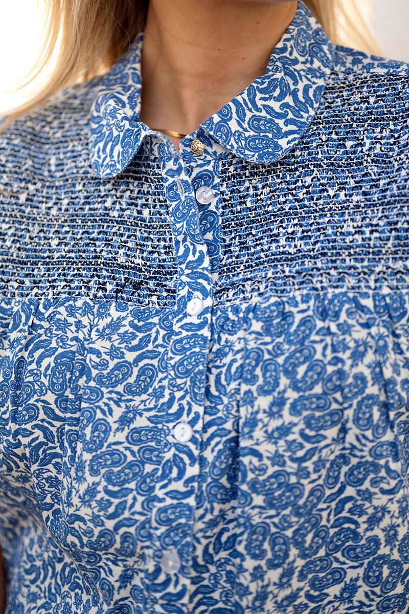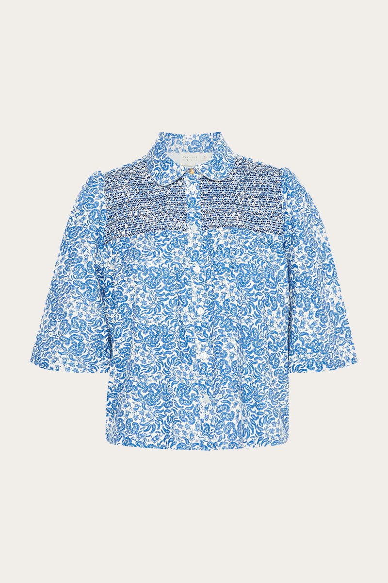 Delikat bomullsskjorte fra Atelier Réve i delikat blomsterprint! IRNoie Shirt har trekvart arm, dekorative detaljer i front og knappelukking. En superfin skjortebluse i 100% deilig bomull som passer perfekt til vår- og sommersesongen.