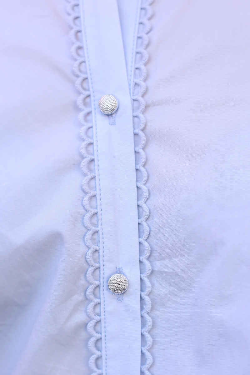 Bestselgeren fra Karen by Simonsen er kommet i en ny og supersøt blåfarge! Chilly KB Blouse er en feminin favoritt med korte puffermer og nydelige, forseggjorte knapper i front. Den broderte kragen gir virkelig prikken over i-en og tilfører eleganse. Kombiner med jeans, skjørt eller dressbukser og skap din egne, unike look!