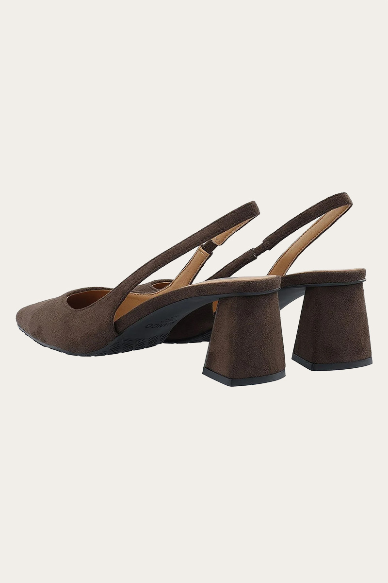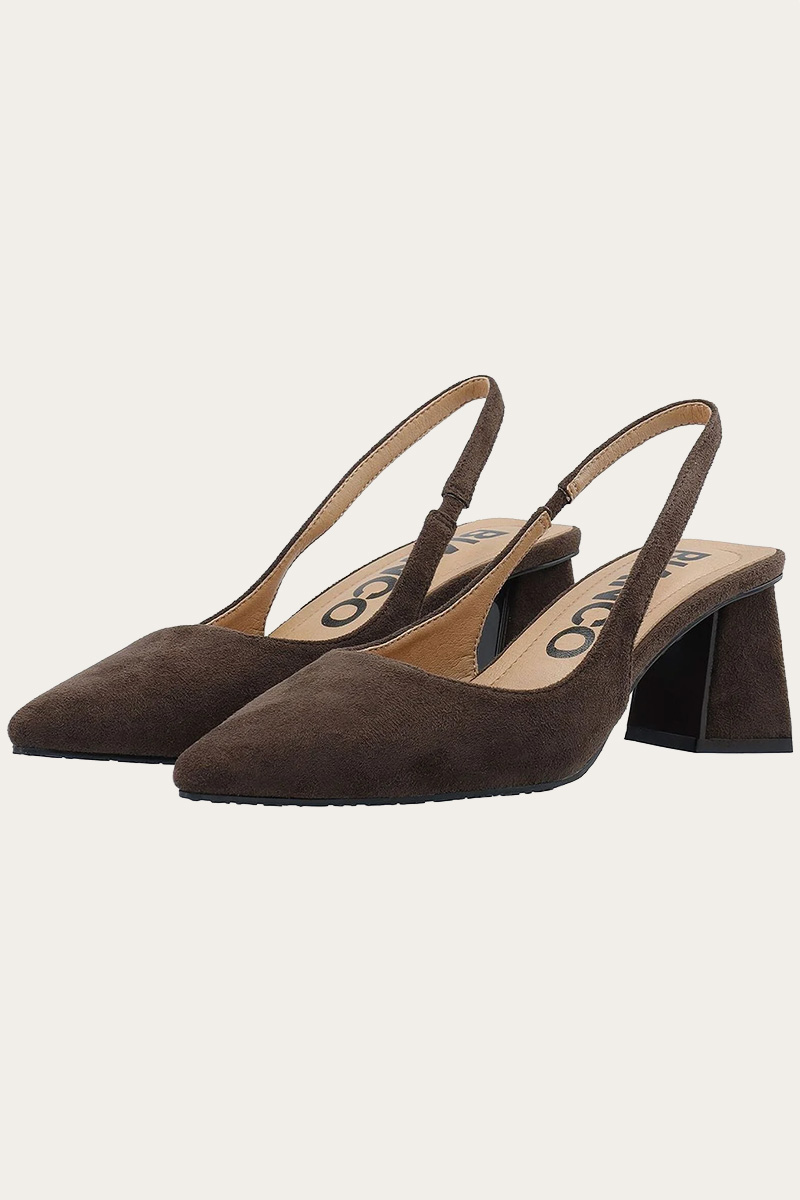 Maralyn Slingback fra Bianco er en elegant og tidløs pumps med en feminin silhuett. Den klassiske slingback-modellen kombineres med en myk overflate i faux semsket skinn og en stabil hæl som gir både komfort og stil – perfekt til både hverdags og fest.