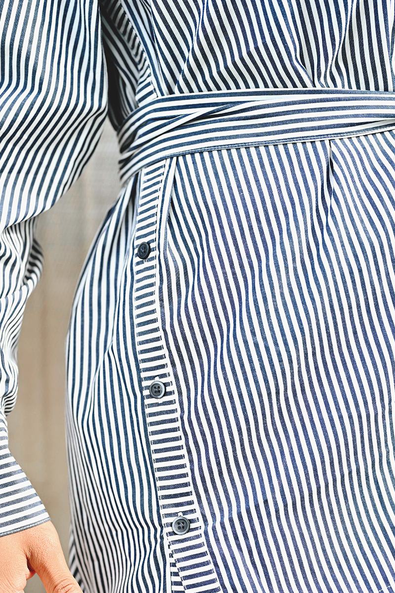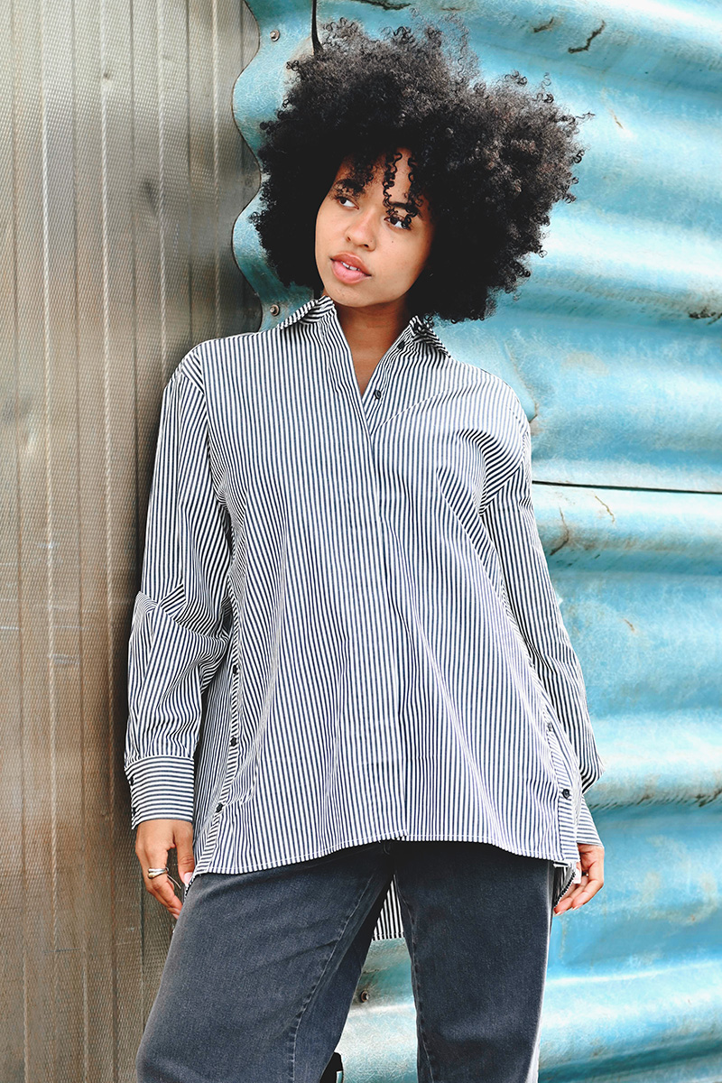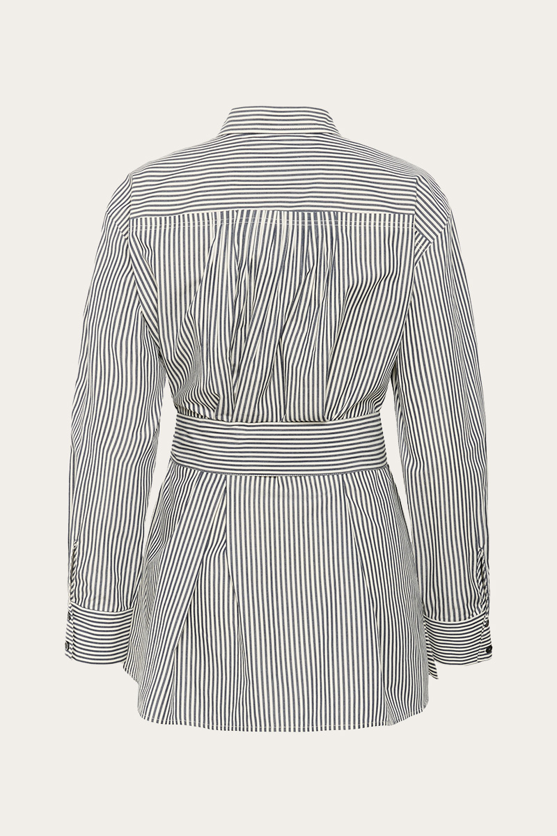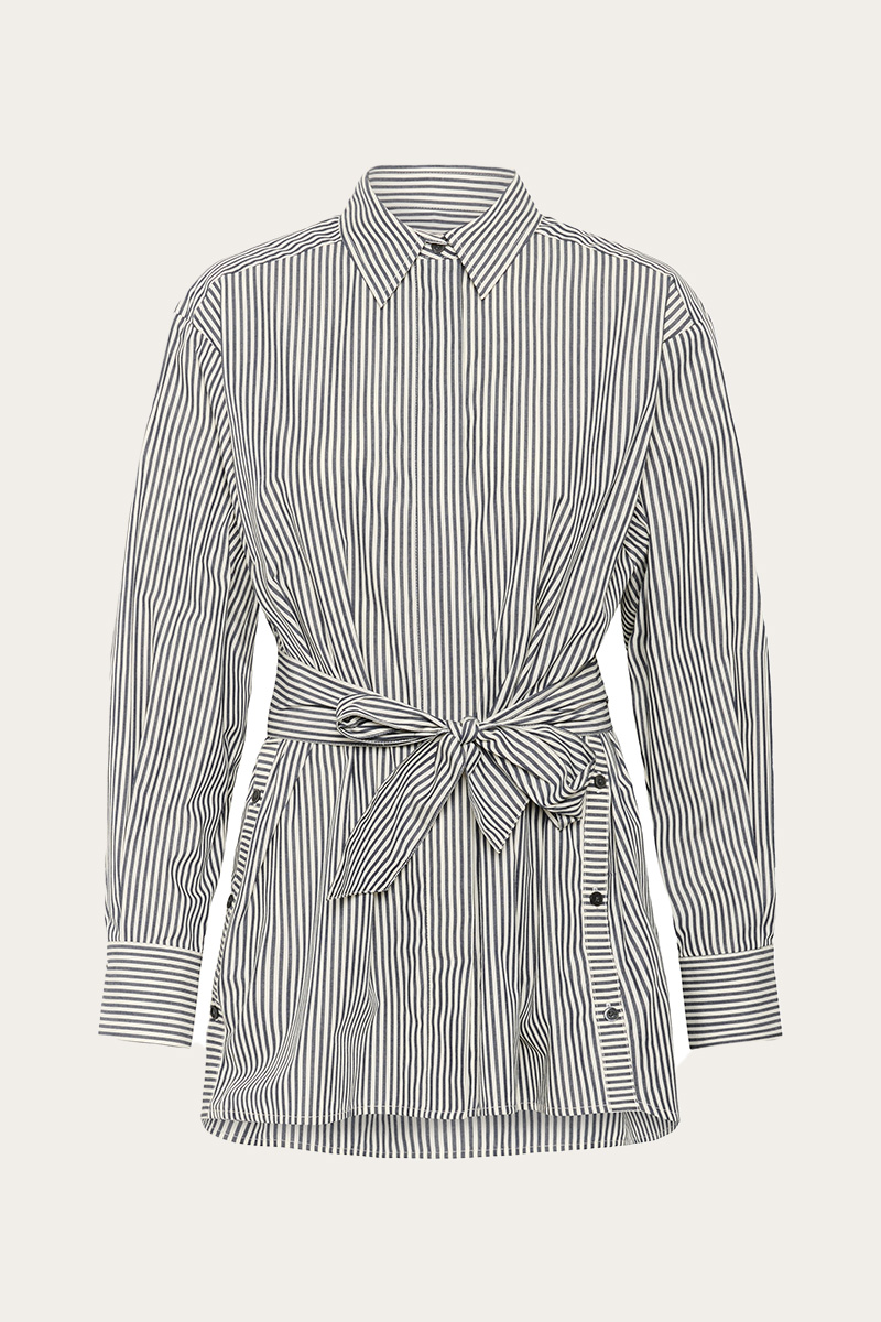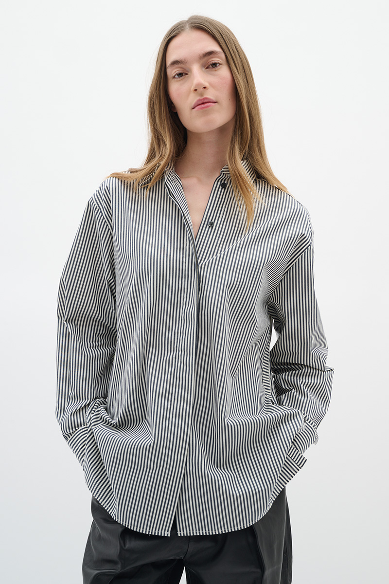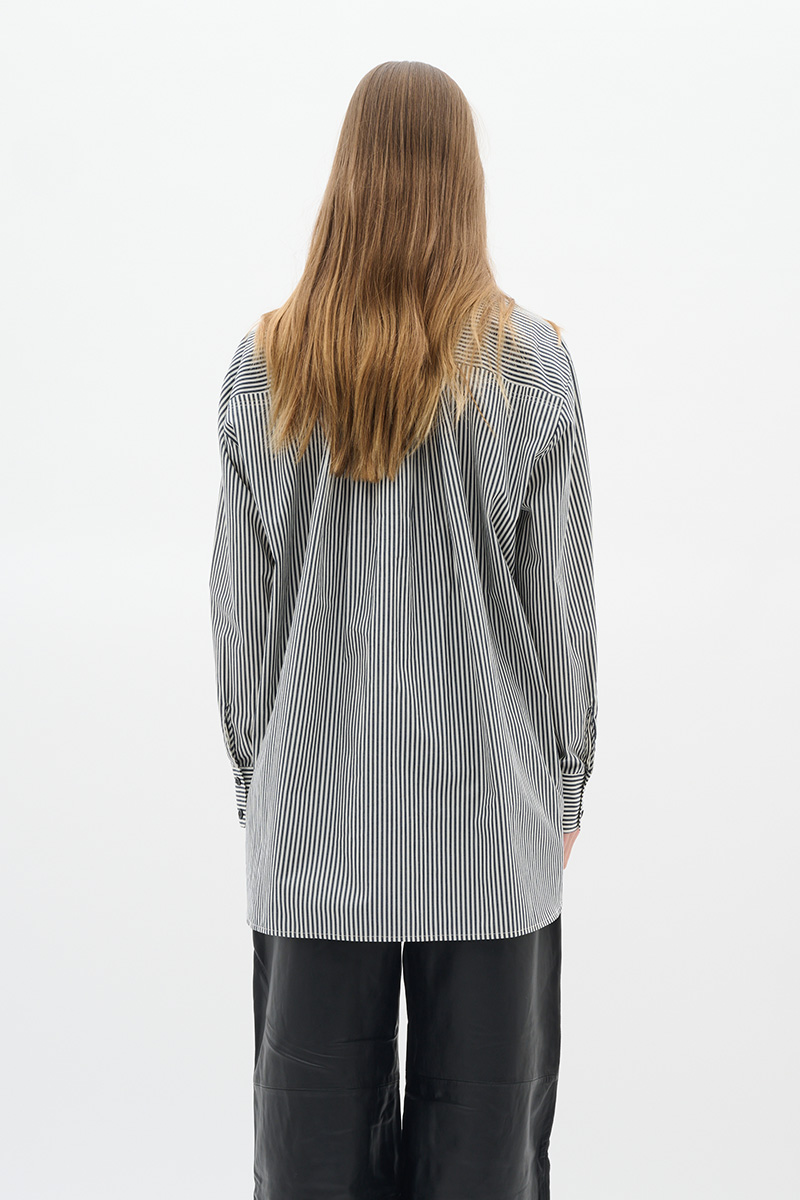 Natalja Shirt fra InWear er en stilfull, oversized skjorte med klassiske grå striper. Den har krage, knappelukking foran og mansjetter med knapp. Det medfølgende, matchende beltet gjør det enkelt å variere stilen og markere midjen.