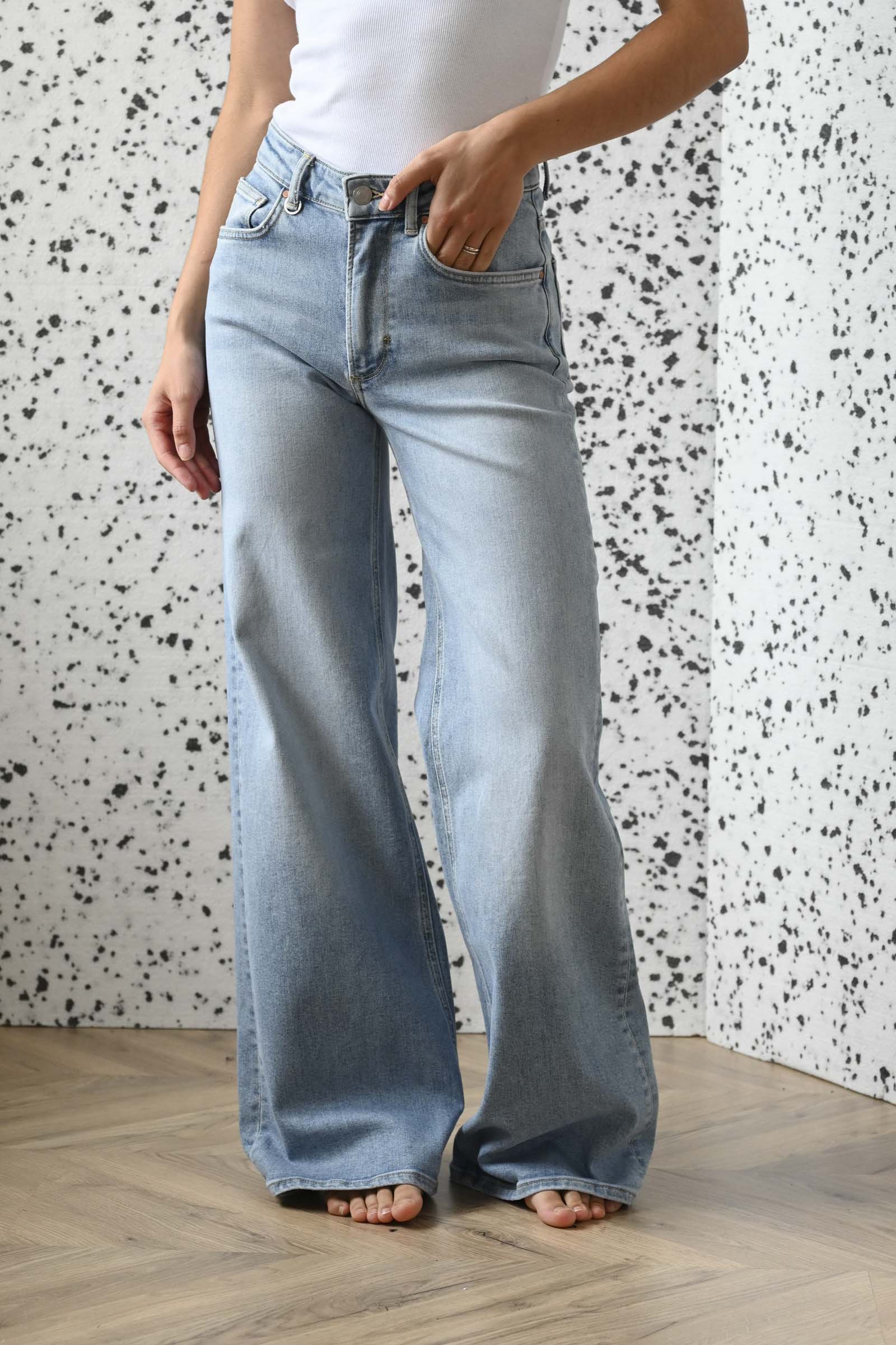 Nye favorittjeans fra Neuw! Eva Wide er designet med en flatterende mid-rise og A-line passform som gir en moderne silhuett. De lange bena og den stødige denimkvaliteten med minimal stretch sikrer at jeansen holder formen over tid. Som alltid kommer den med de ikoniske Neuw-detaljene, inkludert ringen på beltehempen.