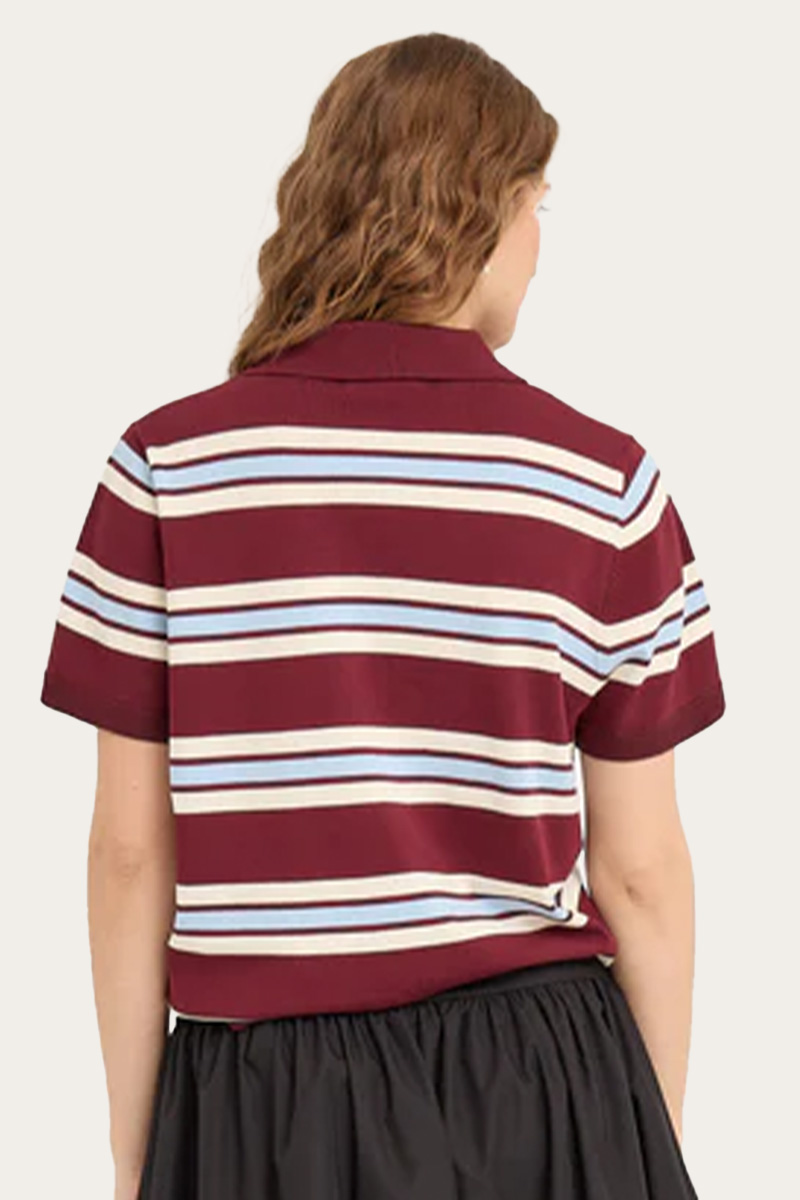 Polo Stripe Knit Blouse Burgundy