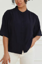 SLEMINE Layna Shirt fra Soaked in Luxury er en lett og moderne skjorte i rosa som kombinerer komfort med et stilrent uttrykk. Den har korte, vide ermer, knappelukking i front og en enkel, ren halsutringning som gir et minimalistisk preg. Den dype blå Night Sky-fargen gjør den enkel å style – perfekt både til jobb og hverdags.