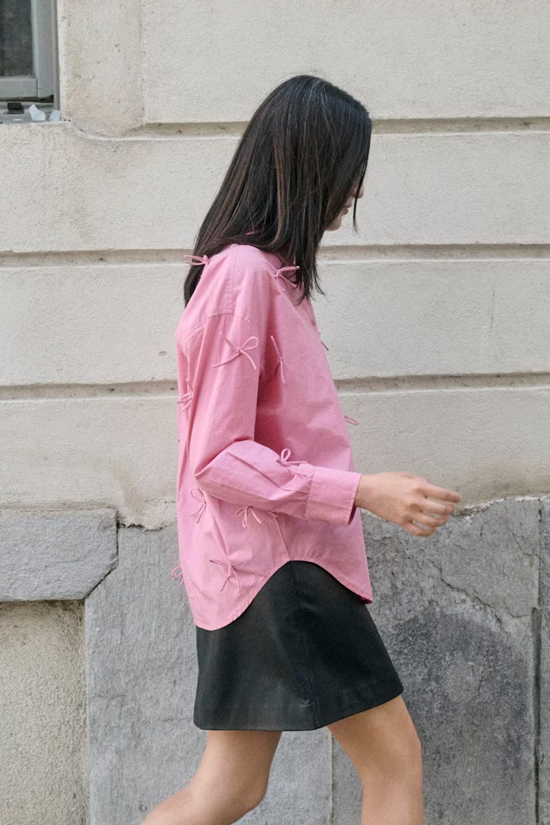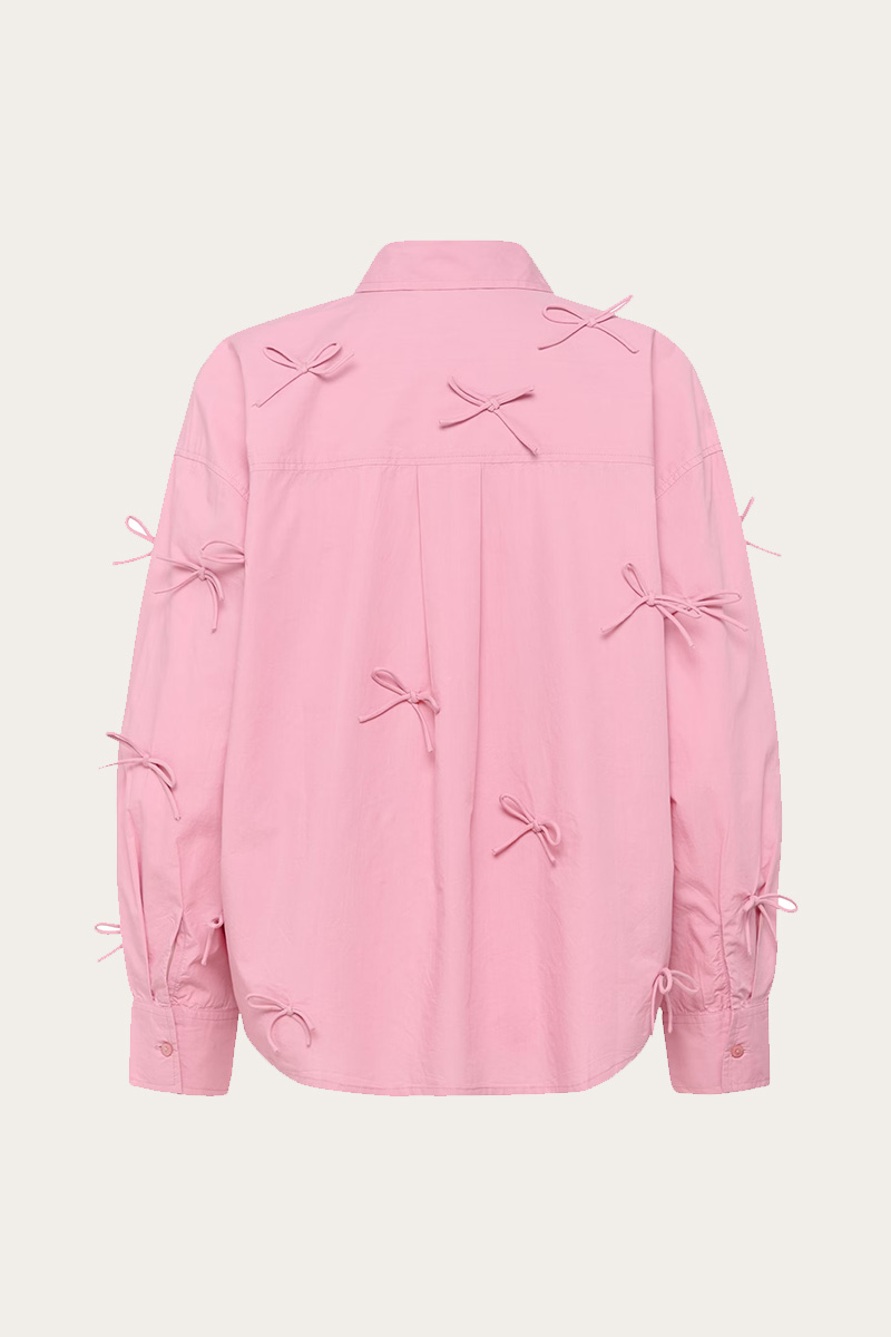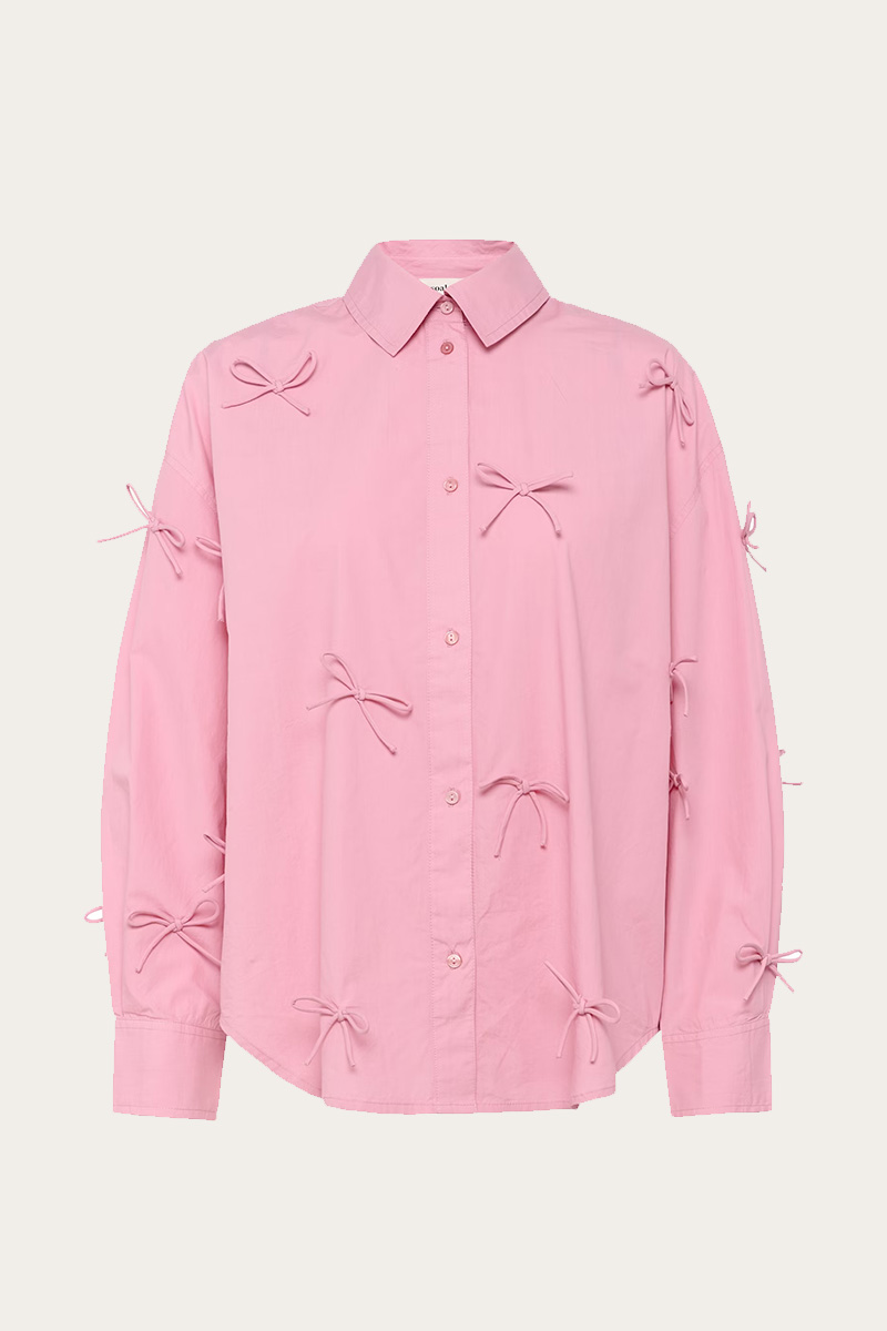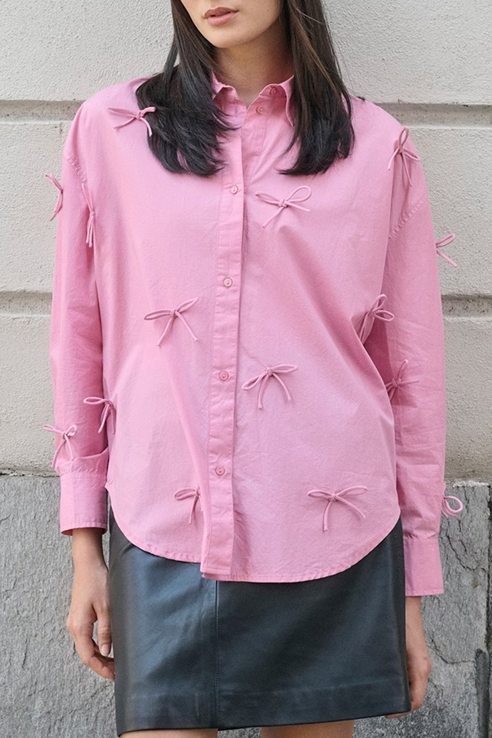 Joa Bow Shirt er en klassisk skjorte med en leken og feminin vri. Den er laget i 100 % bomull og har en avslappet passform som gir komfort hele dagen. Skjorten har lange ermer og er dekorert med små, søte sløyfer som gir designet personlighet og karakter. Perfekt både til hverdags og kontor – et enkelt plagg med det lille ekstra.