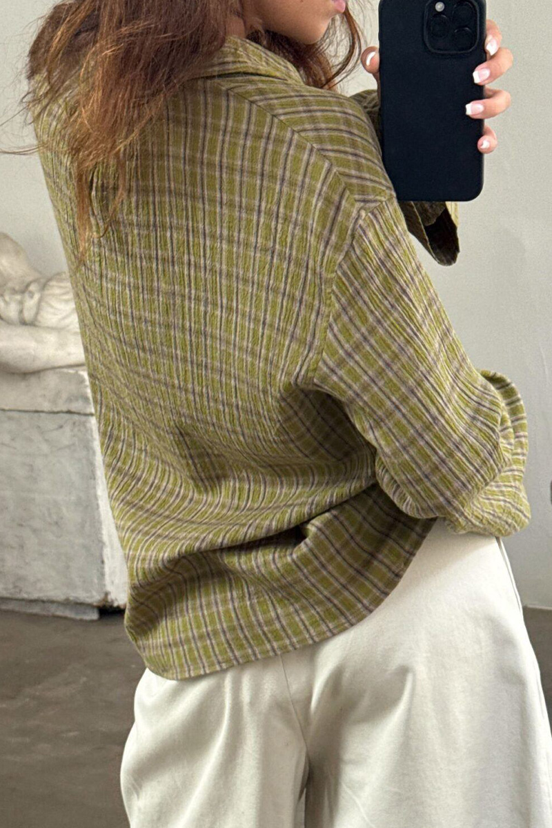 Tinsi check shirt er en avslappet skjorte med et klassisk rutemønster. Den løse passformen og de fine foldene foran og bak gir et mykt fall og et uanstrengt, men stilrent uttrykk. Perfekt til både hverdags og lag-på-lag styling.
