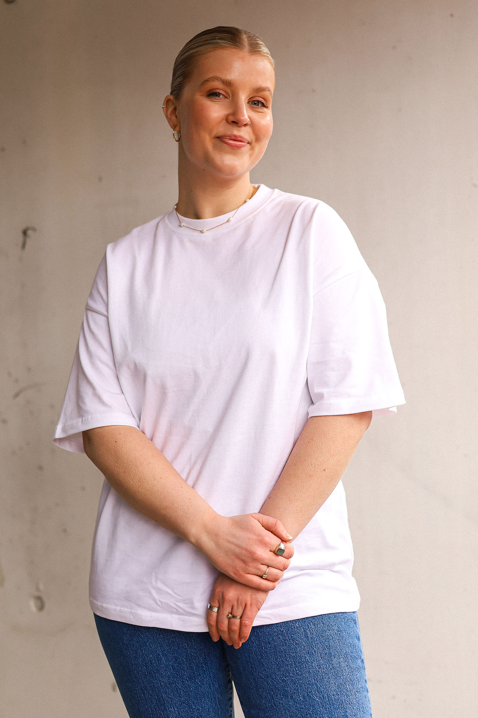 Modellen er 172 cm høy og bruker størrelse S.100% Økologisk Bomull